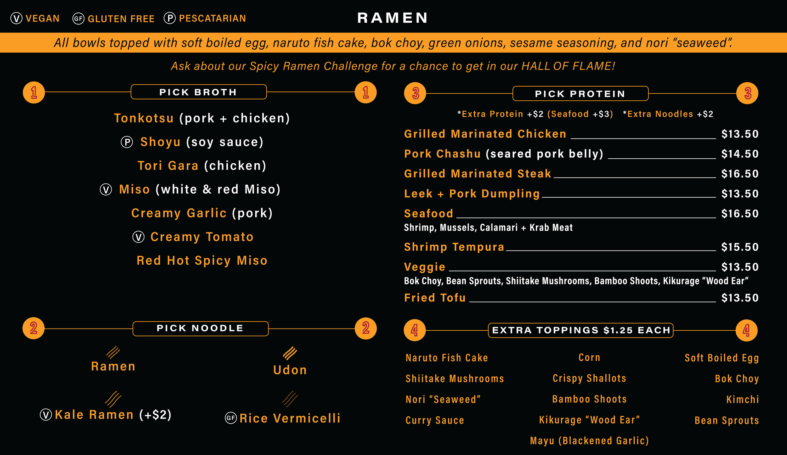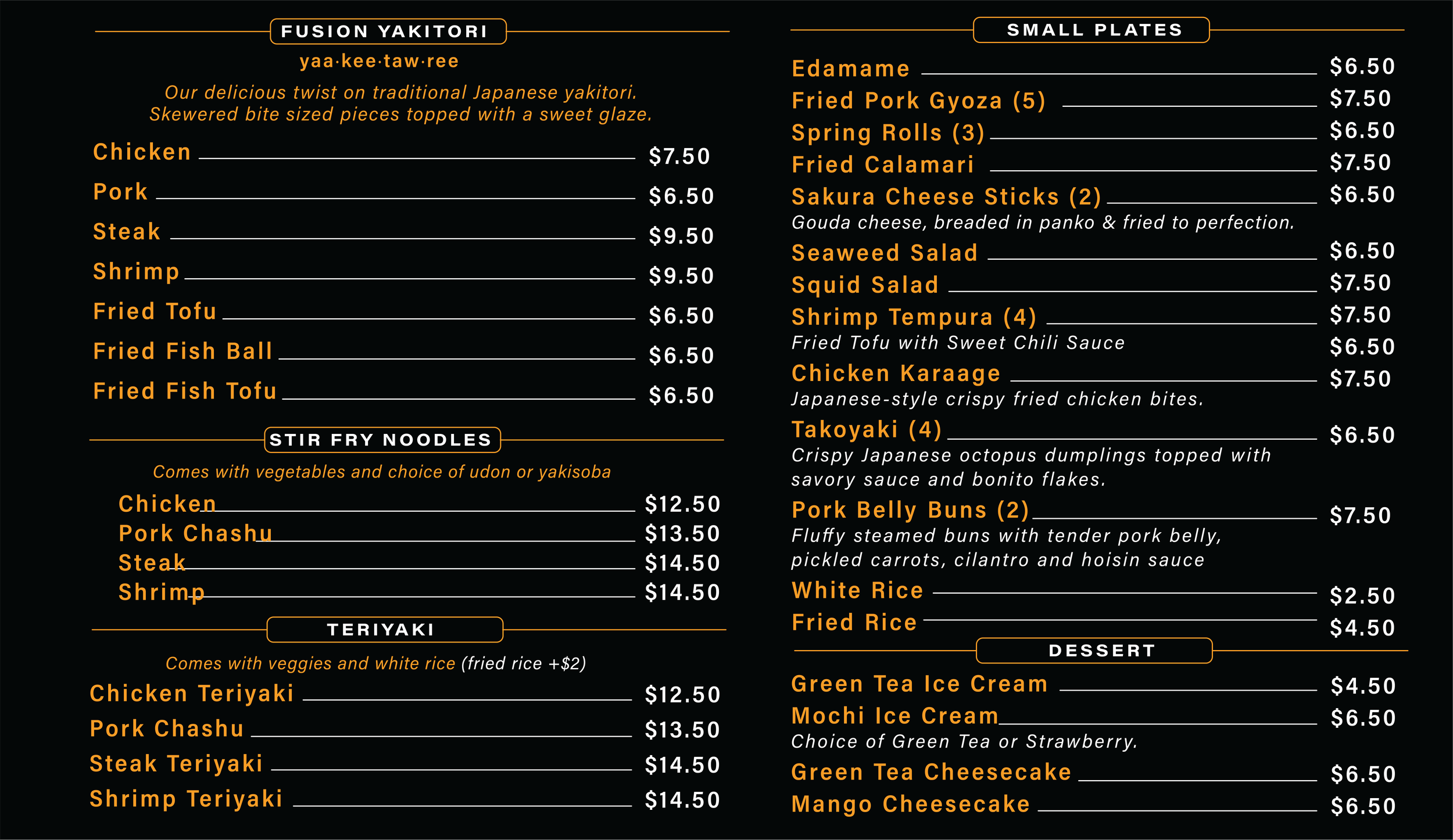 Sip and slurp up delicious, flavorful Japanese ramen noodles alongside sizzling plates of Japanese yakitori (skewered meats) and teriyaki.